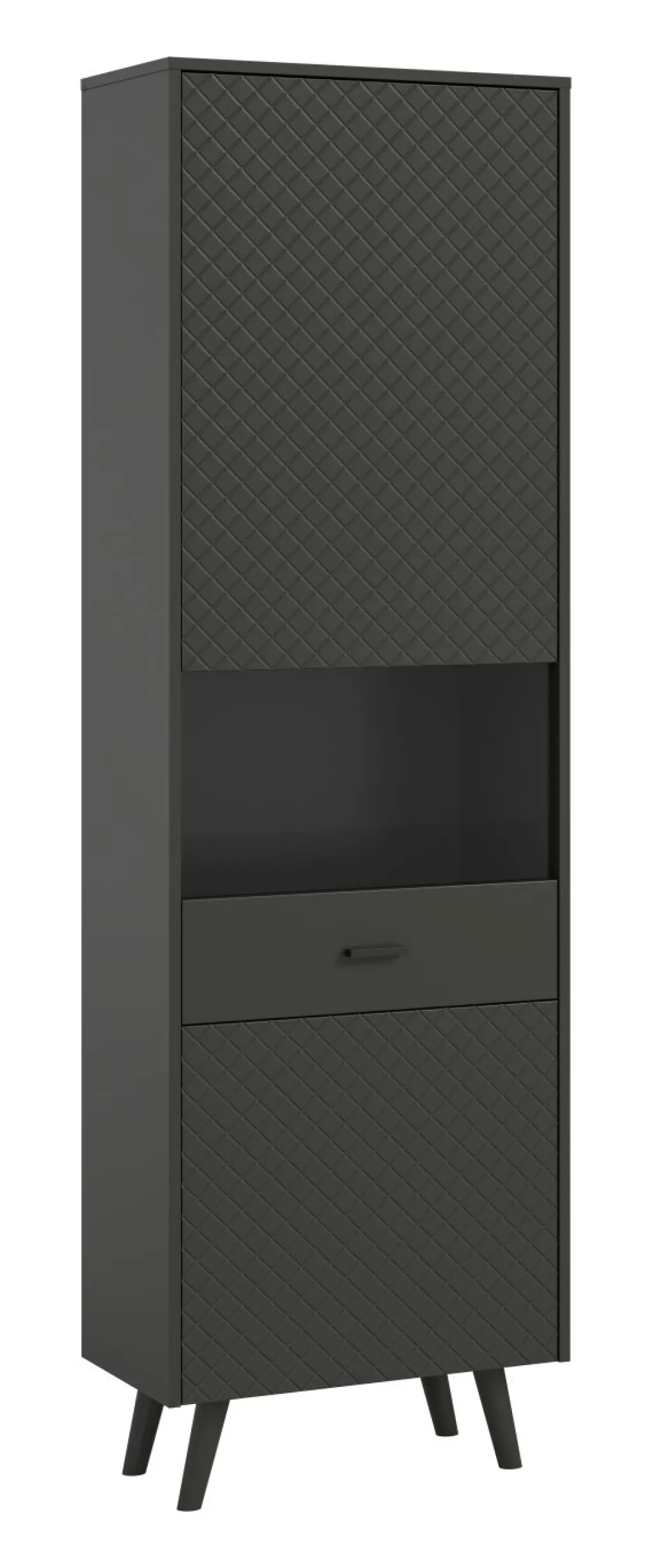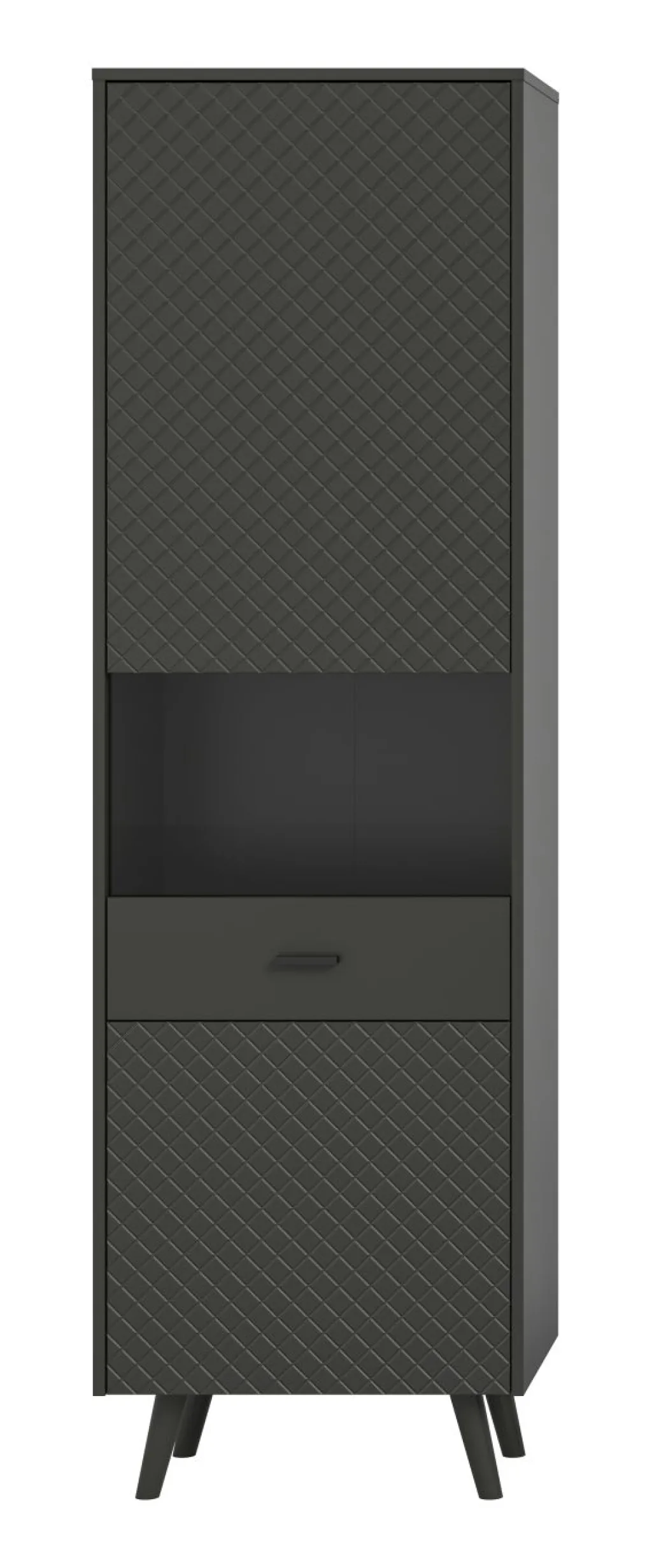 Façade : MDF ton gris mat (panneaux de fibres de bois de moyenne densité) thermoformé / verre