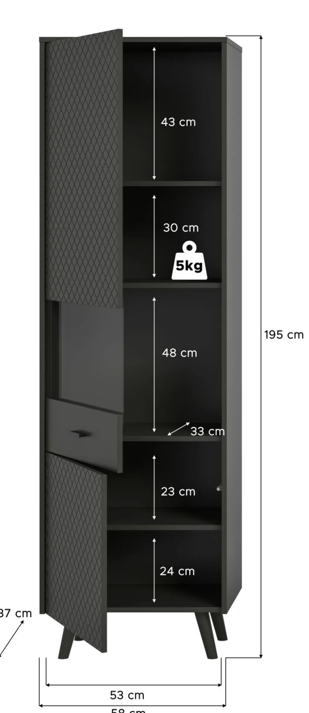 | Dimensions : | L/H/P env. 58/195/37 cm | ||