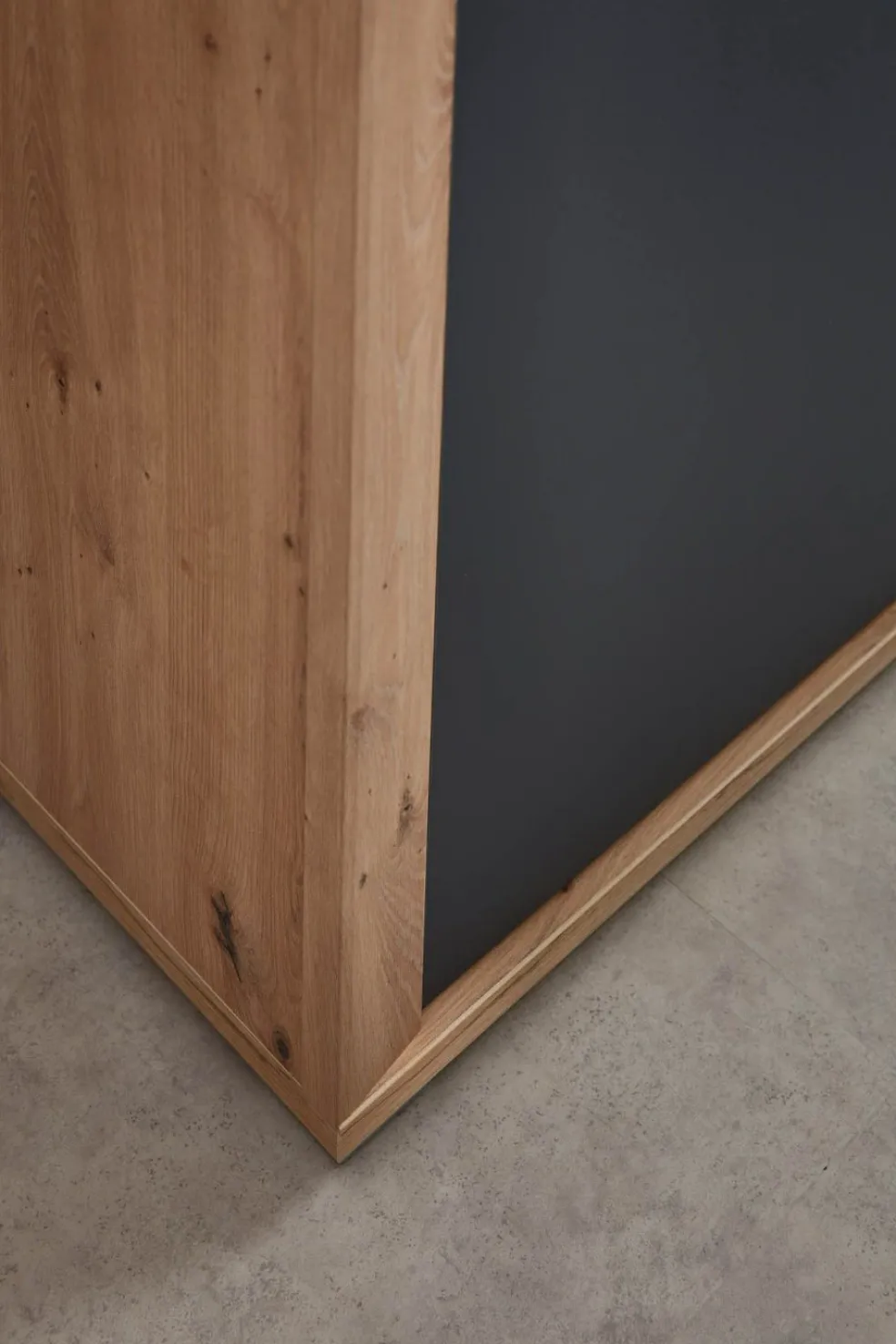 Façade : mélaminé ton graphite avec contrastes décor chêne Artisan