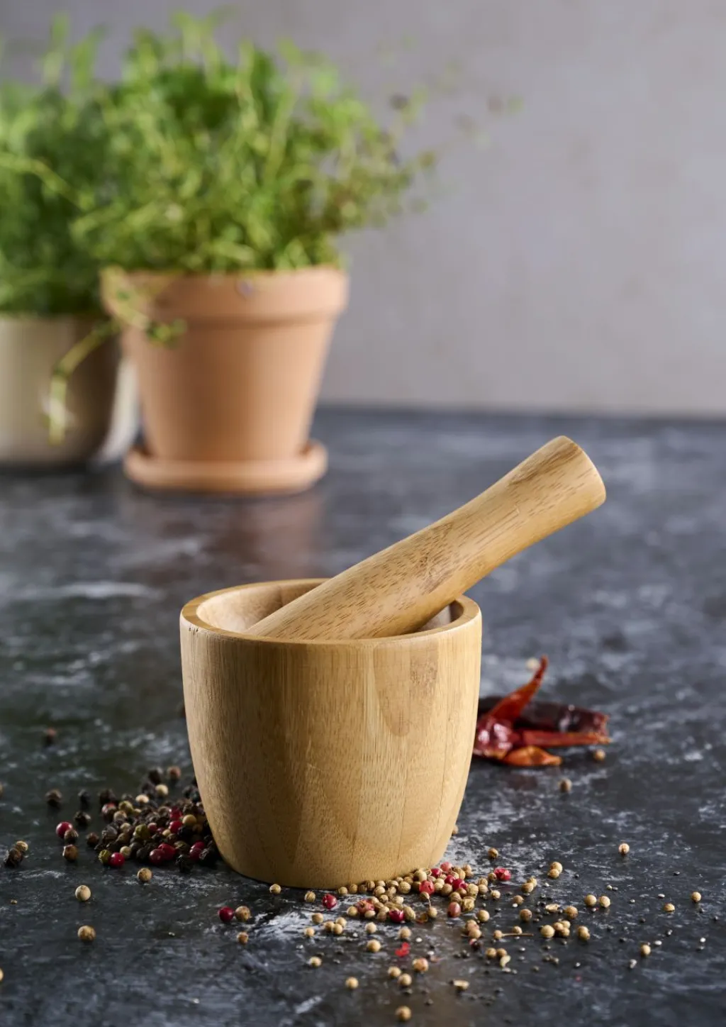 1 mortier en bambou avec pilon