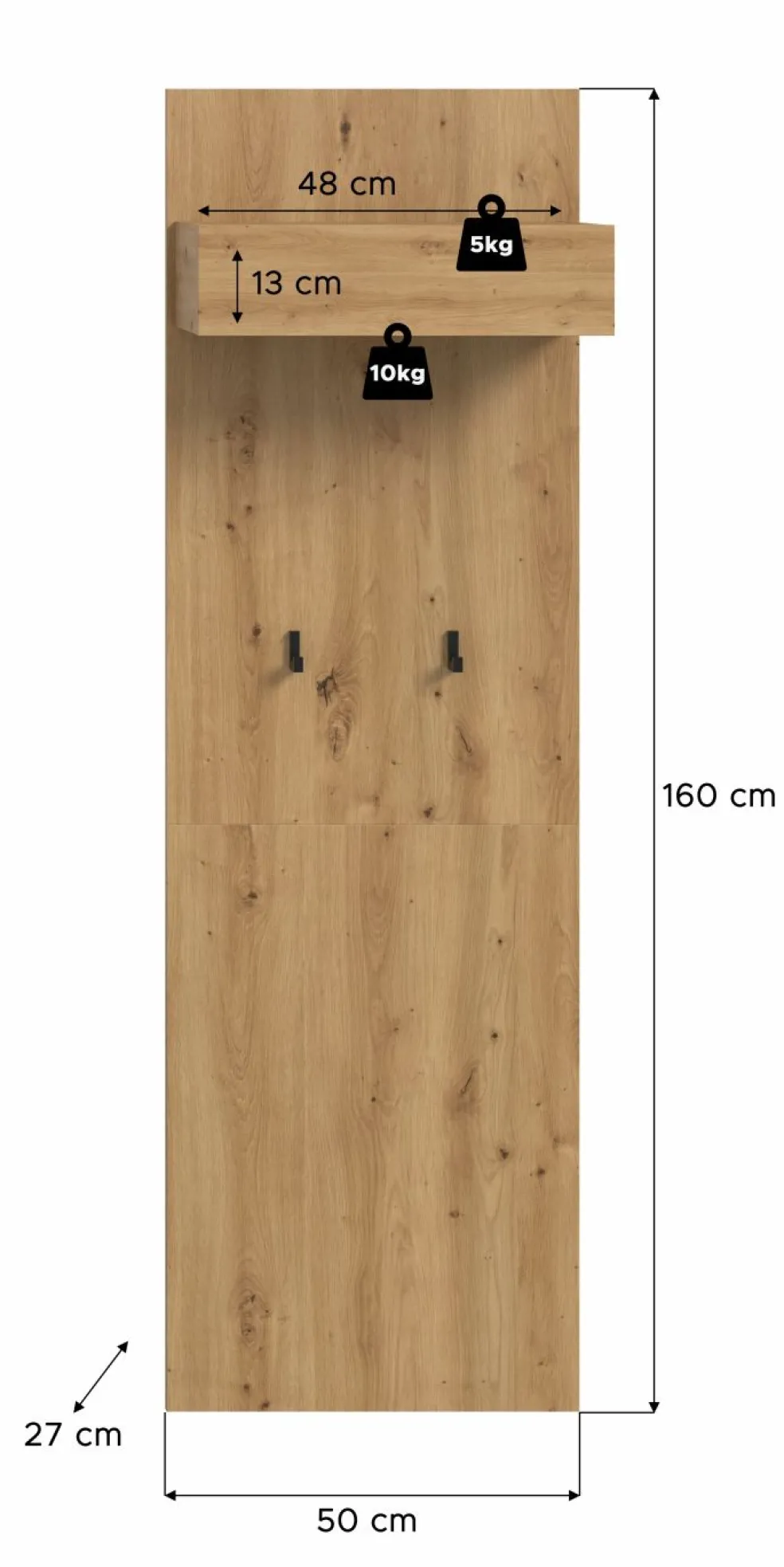 | Panneau portemanteau | 50 | 160 | 27 |
