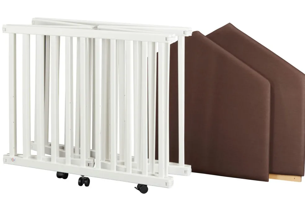 Grâce au système pliant, le parc bébé hexagonal peut s’utiliser rapidement.