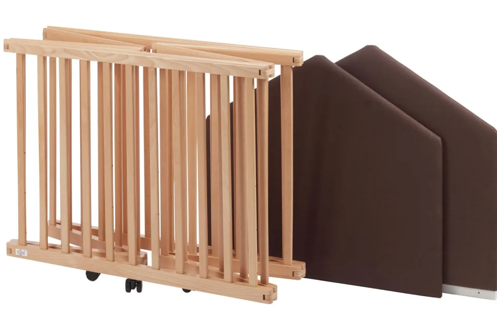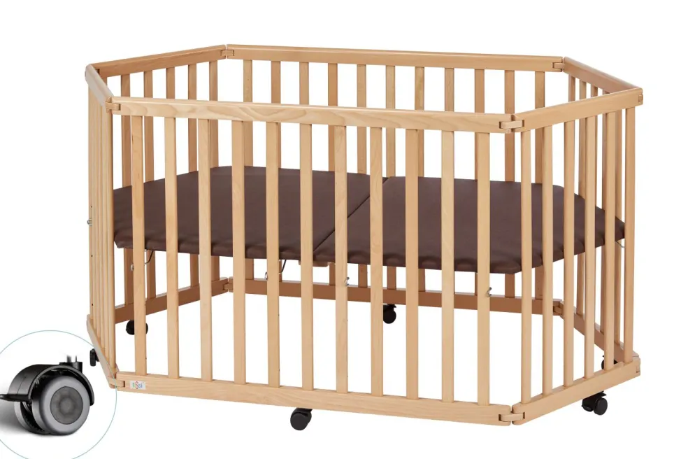 Grâce au système pliant, le parc bébé hexagonal peut s’utiliser rapidement.