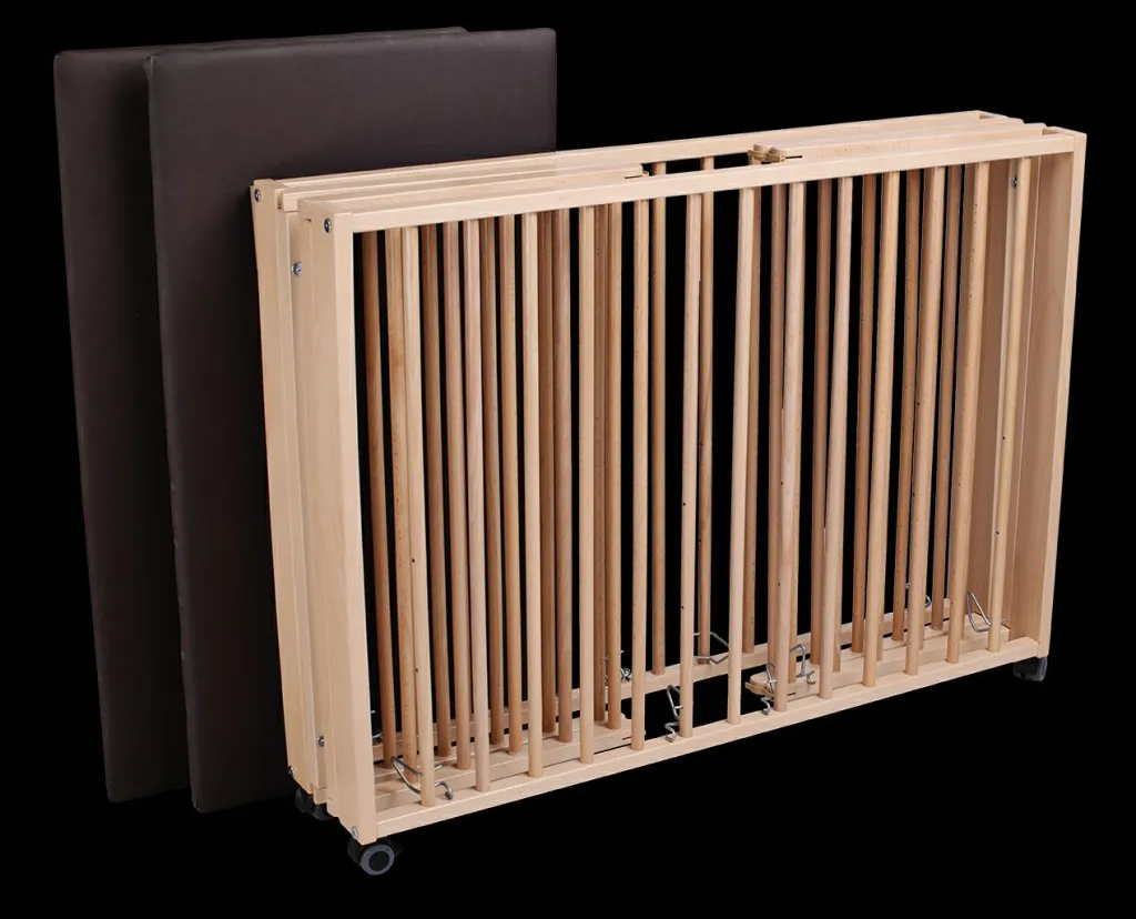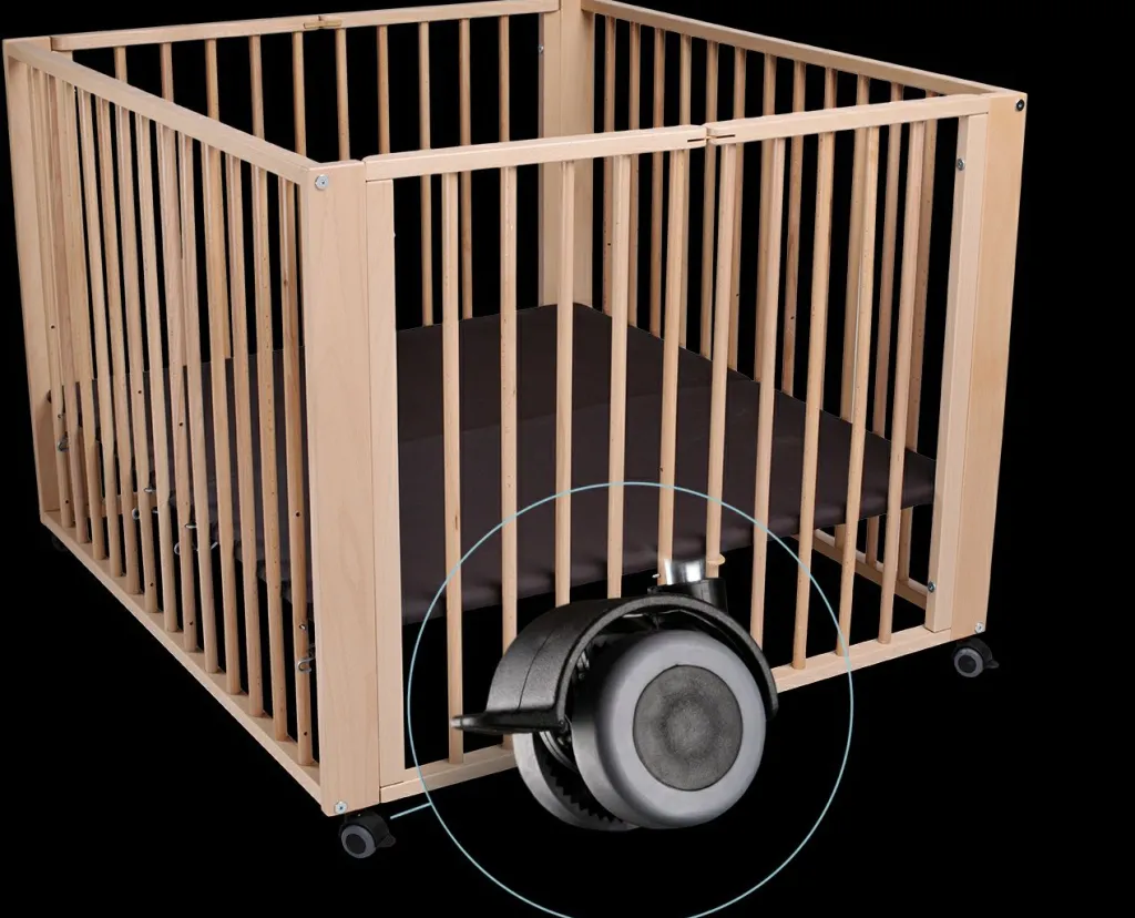 Grâce au mécanisme rabattable, le parc pour bébé peut être déplié facilement sans outil, puis replié et rangé sur le côté pour un faible encombrement.