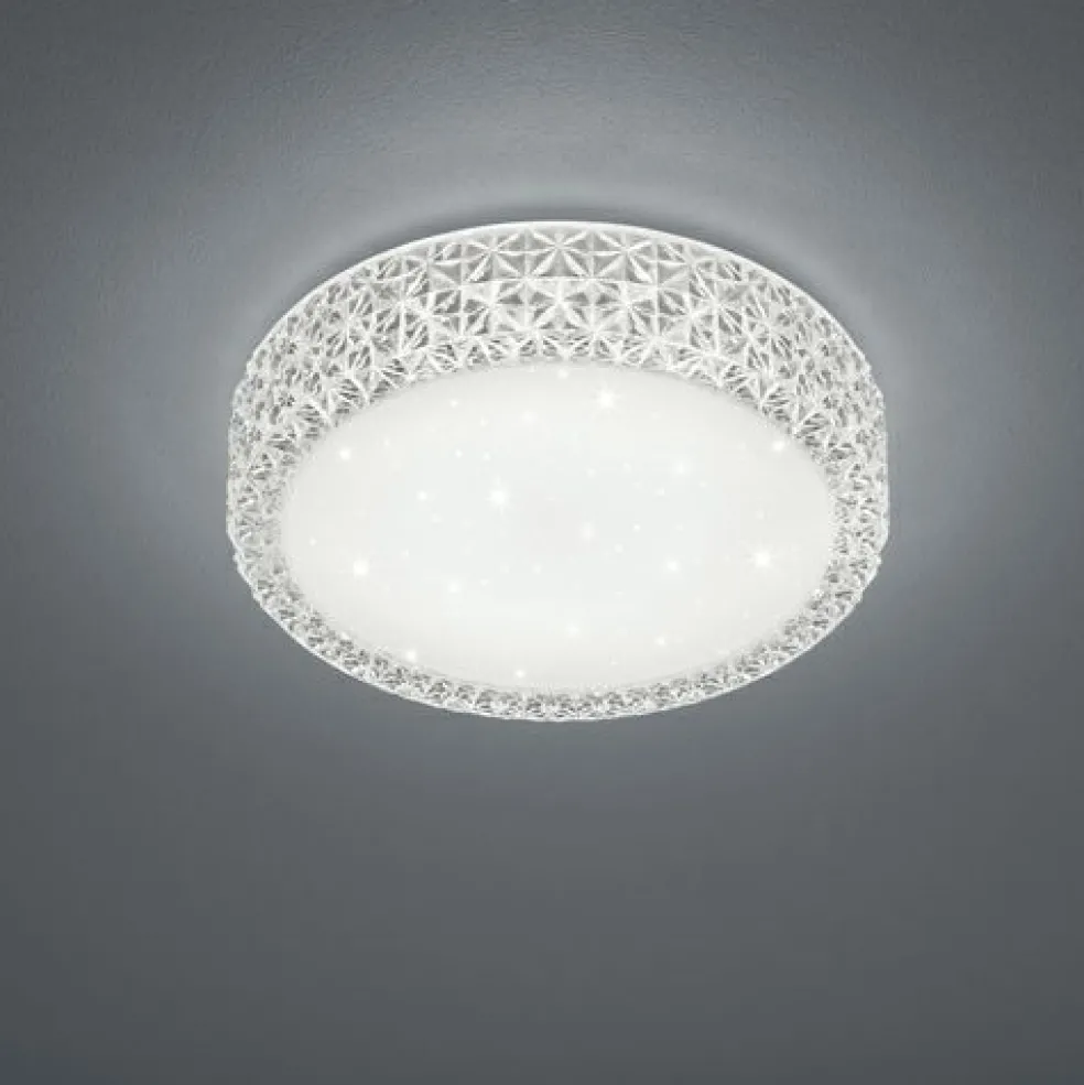 Le plafonnier PEGASUS garantit un éclairage uniforme de votre pièce. Grâce à l’effet pailleté au niveau de l’abat-jour, le plafonnier Pegasus répand une lumière d’un charme irrésistible. Son diamètre est de 28 cm. La lampe PEGASUS en acrylique blanc est mise en valeur par son bord stylé qui lui confère beaucoup de classe et d’élégance. De petites pierres à la surface garantissent une ambiance lumineuse agréable. La lampe dispose, en outre, de la technologie LED qui se caractérise par une luminosité de qualité et une excellente efficacité énergétique. Ceci permet d’économiser 80 % des coûts énergétiques par rapport aux ampoules halogènes habituelles. De plus, les sources lumineuses LED ont une durée de vie accrue, produisent moins de chaleur et participent à la protection de l’environnement.