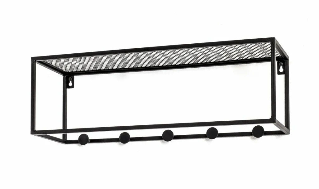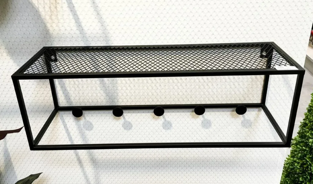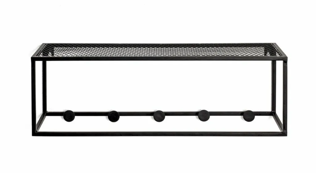 tube acier laqué ton noir avec une tablette en métal tressé laqué ton noir