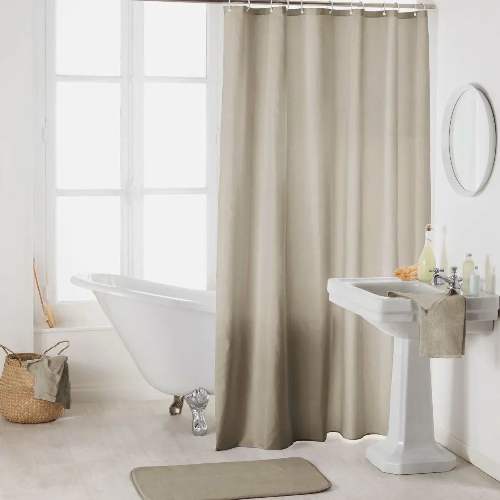 1 rideau de douche à œillets avec anneaux