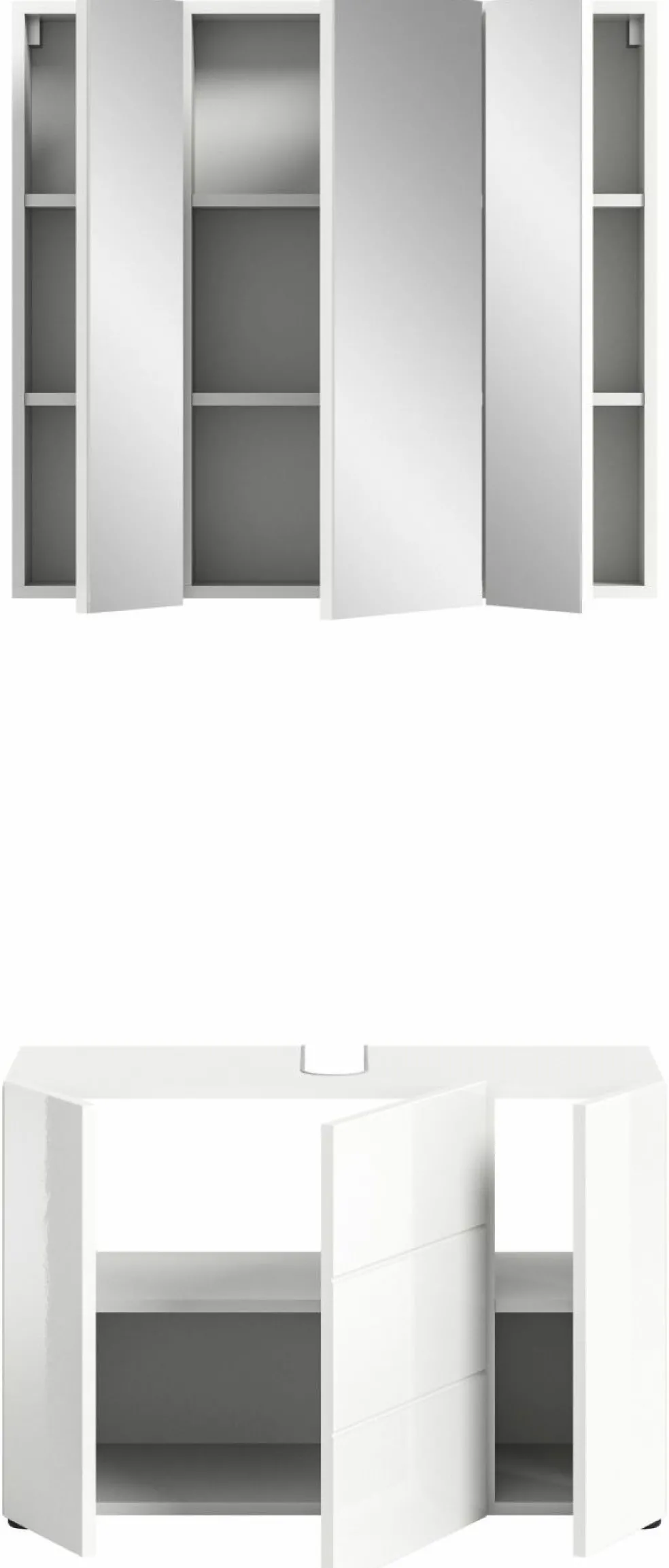 Façade : MDF (panneau de fibres de bois de densité moyenne ) thermoformé ton blanc ultra brillant / miroir