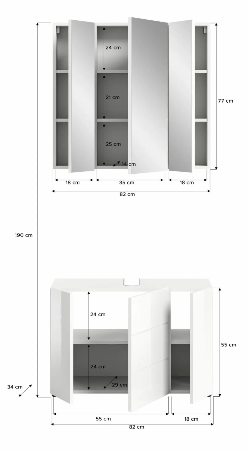 | Armoire de toilette | 82 | 77 | 18 |