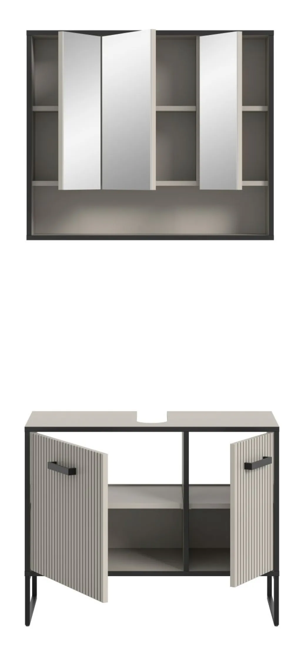 1 meuble sous lavabo avec 2 portes et 2 tablettes amovibles