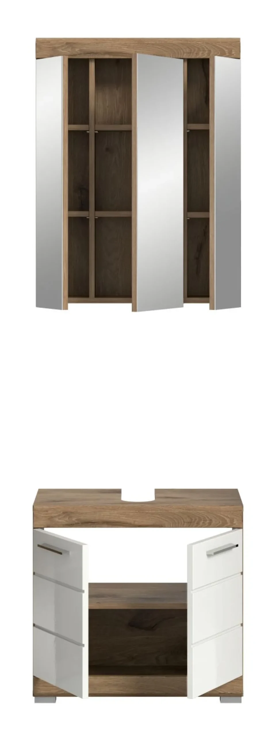 1 armoire de toilette avec 3 portes et 6 tablettes amovibles