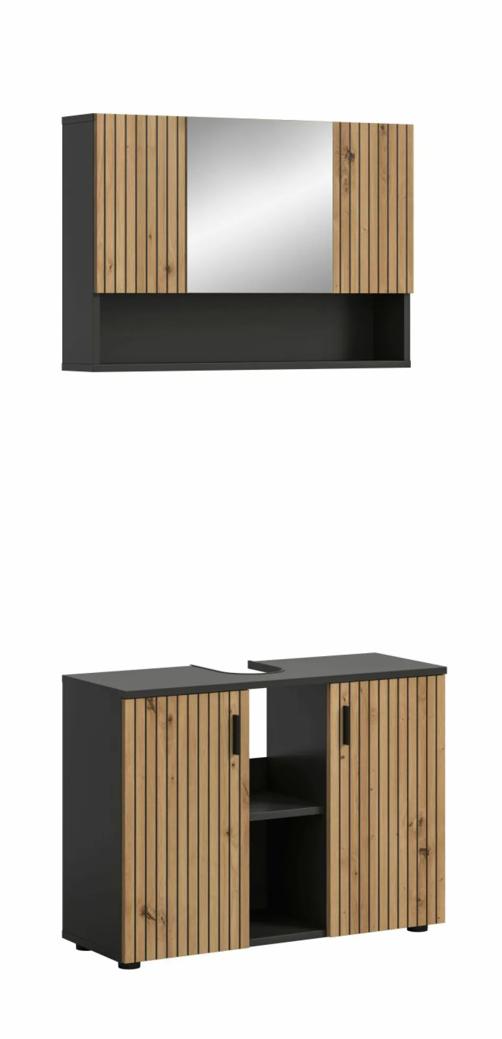 1 meuble sous lavabo avec 2 portes, 3 tablettes amovibles et 2 casiers ouverts