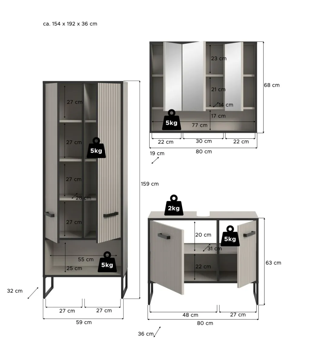 | Meuble colonne | 59 | 159 | 32 |
