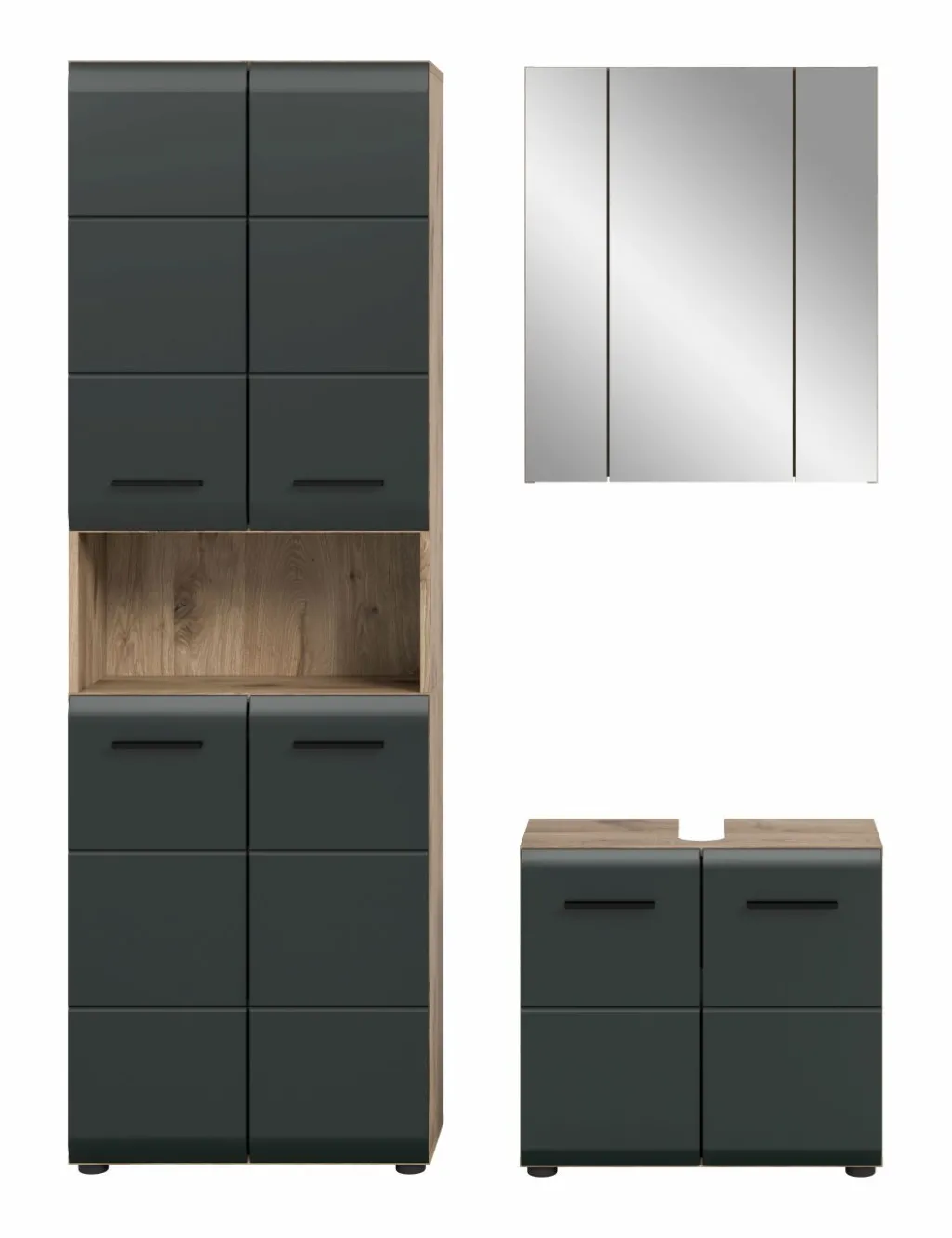 Façade : MDF (panneaux de fibres de bois de densité moyenne) ton noir mat thermoformé / miroir