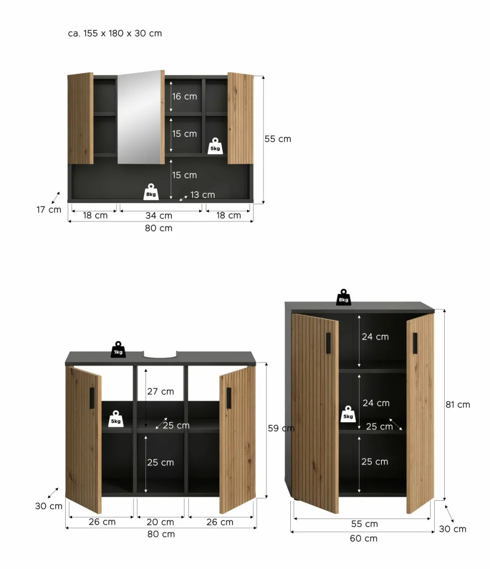 | Meuble sous lavabo | 80 | 59 | 30 |