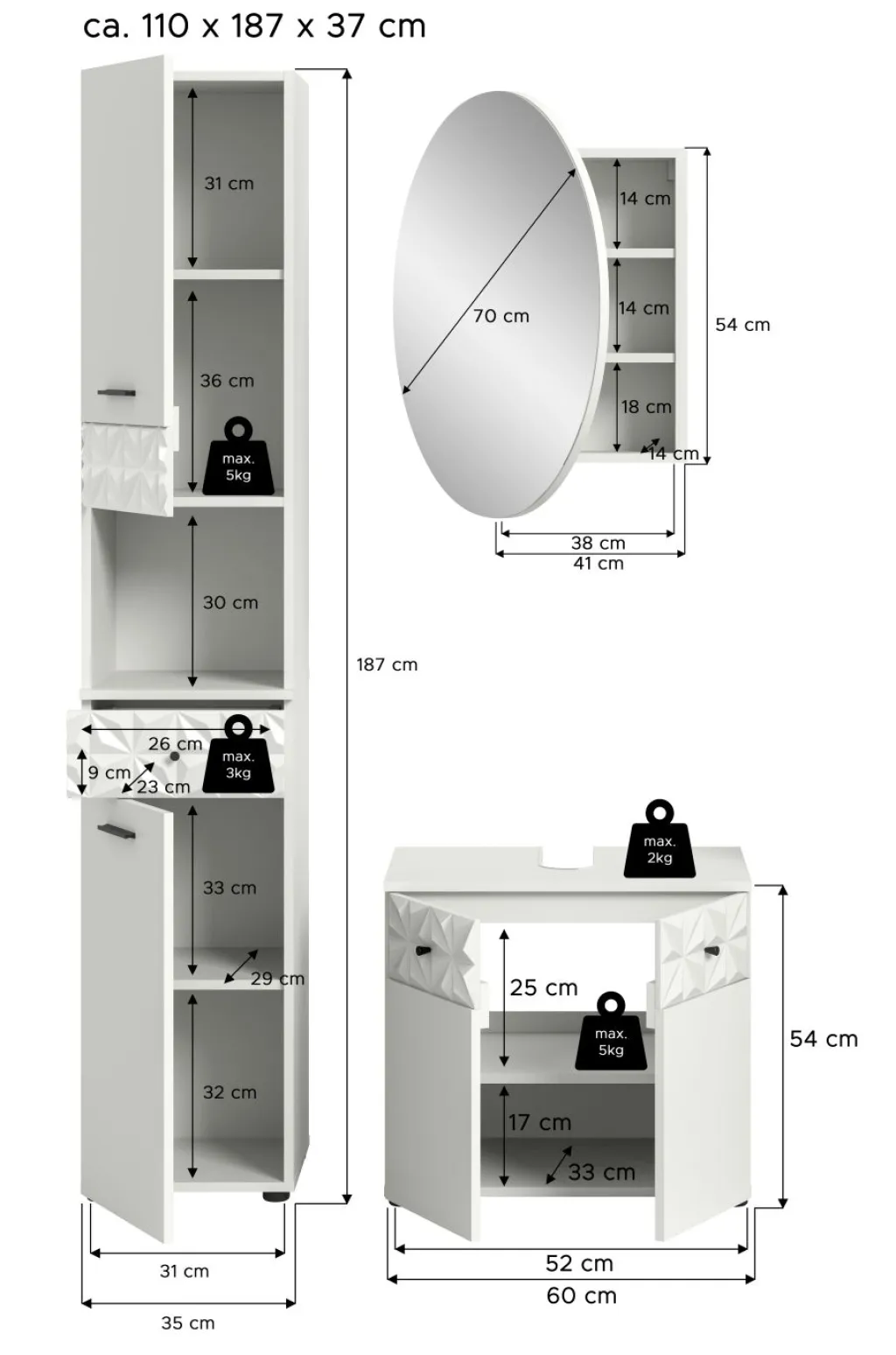 | Meuble sous lavabo | 60 | 54 | 37 |