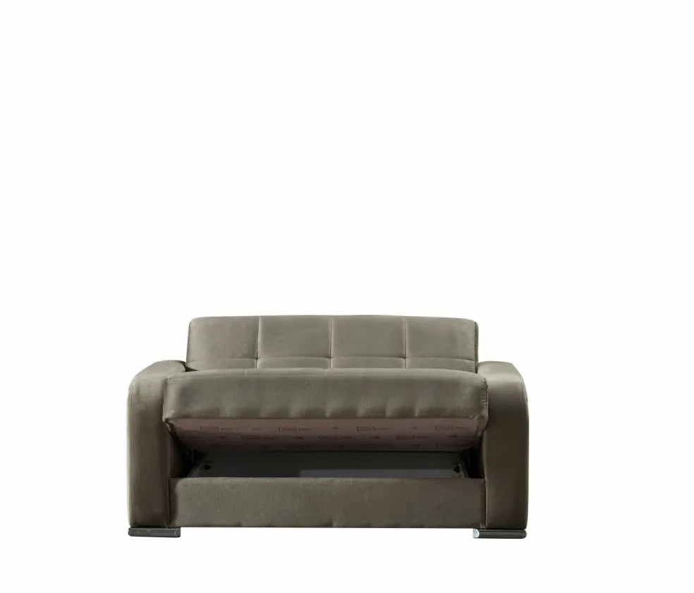 1 canapé 3 places avec coffre de lit et 2 coussins décoratifs