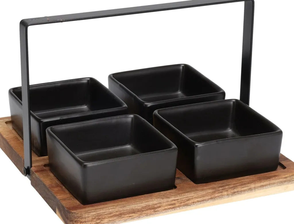 1 service apéro comprenant 4 coupelles et 1 plateau rond