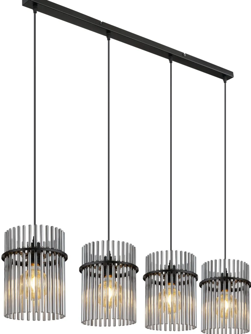 La suspension GORLEY est une solution élégante et tendance pour l’éclairage de votre intérieur. Grâce à son rail droit et à ses quatre lampes, elle garantit un éclairage agréable et stylé dans votre pièce de vie. Les abat-jours sont constitués de tiges de verre joliment assemblés. Ce design crée un jeu de lumière fascinant qui plongera votre pièce dans une ambiance cosy.