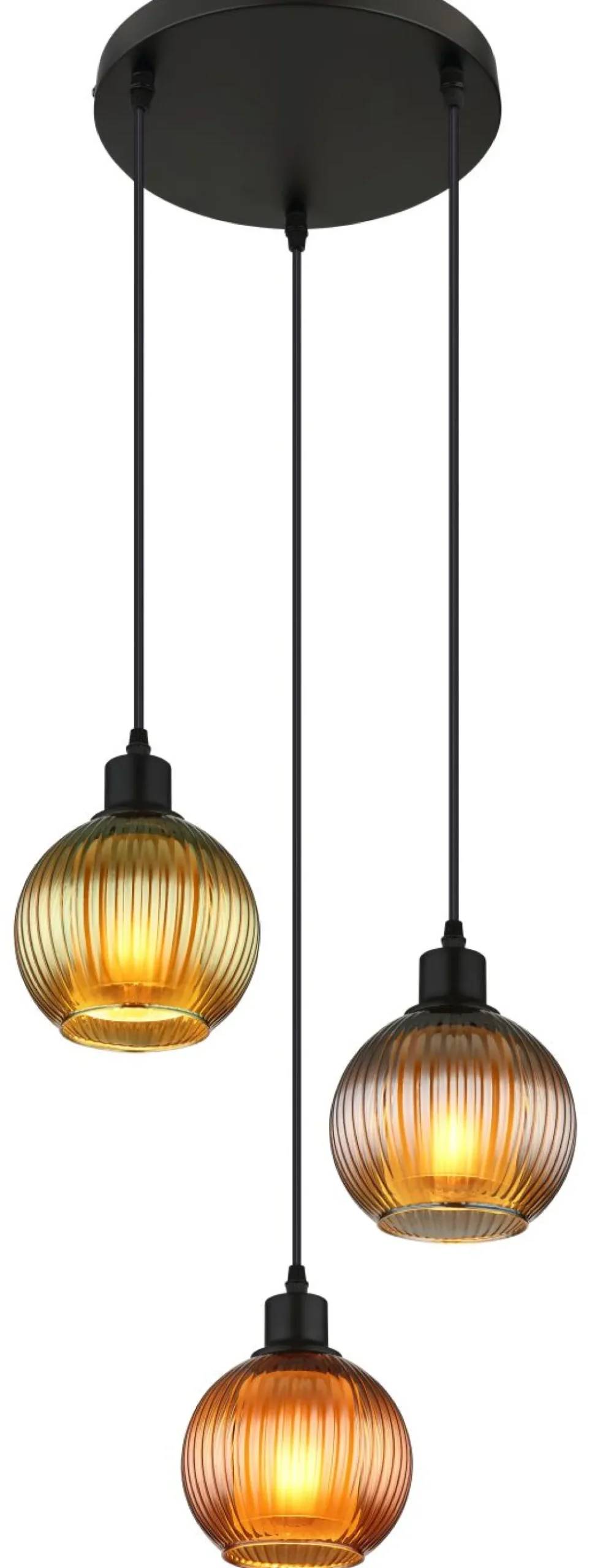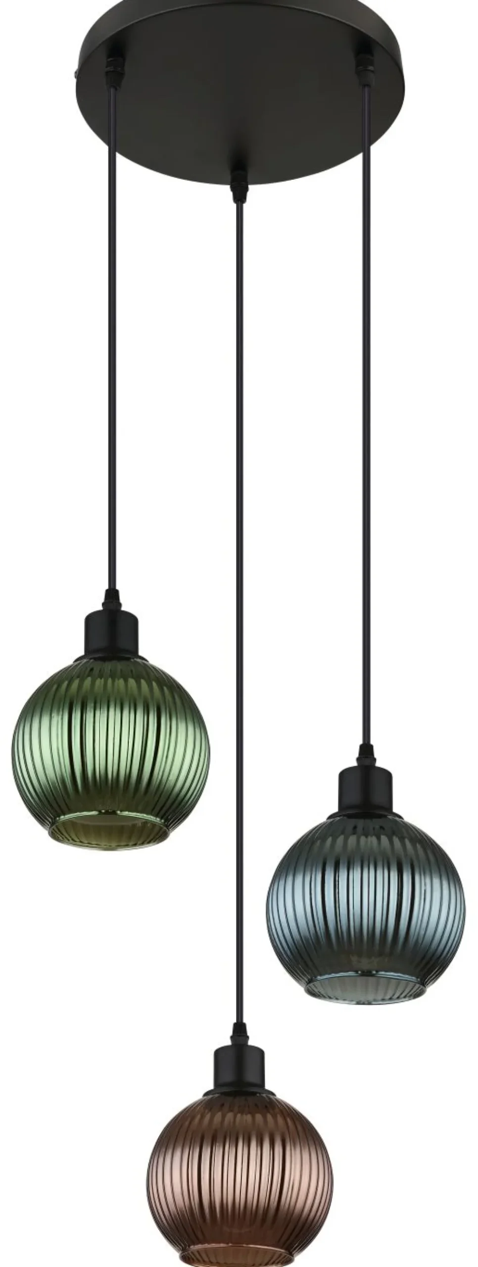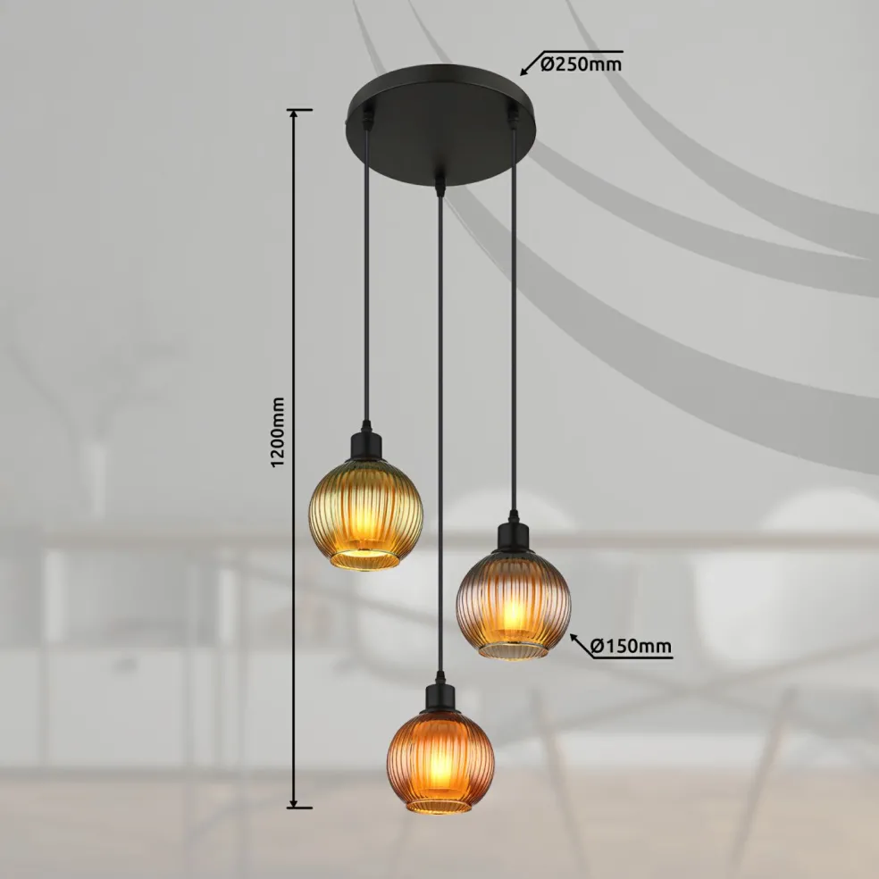 L’élégante lampe avec 3 suspensions équipées d’abat-jours boules en verre rainuré attirera tous les regards dans votre pièce.