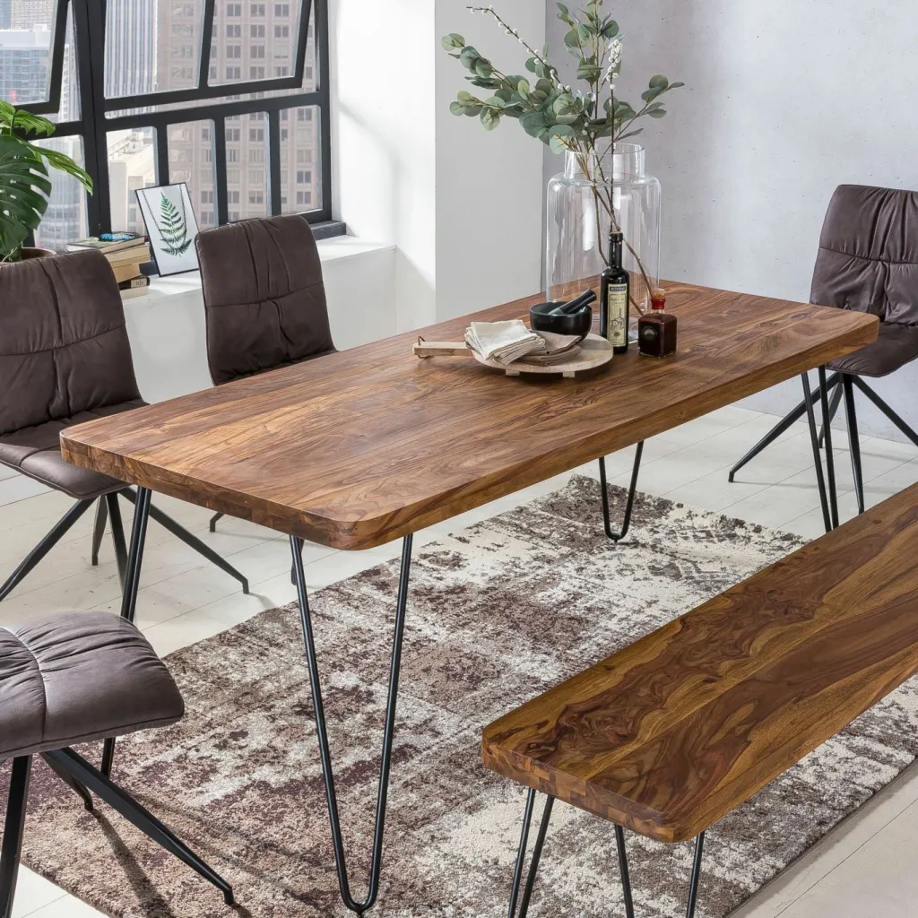 Plateau de table : bois de sheesham massif (Inde)