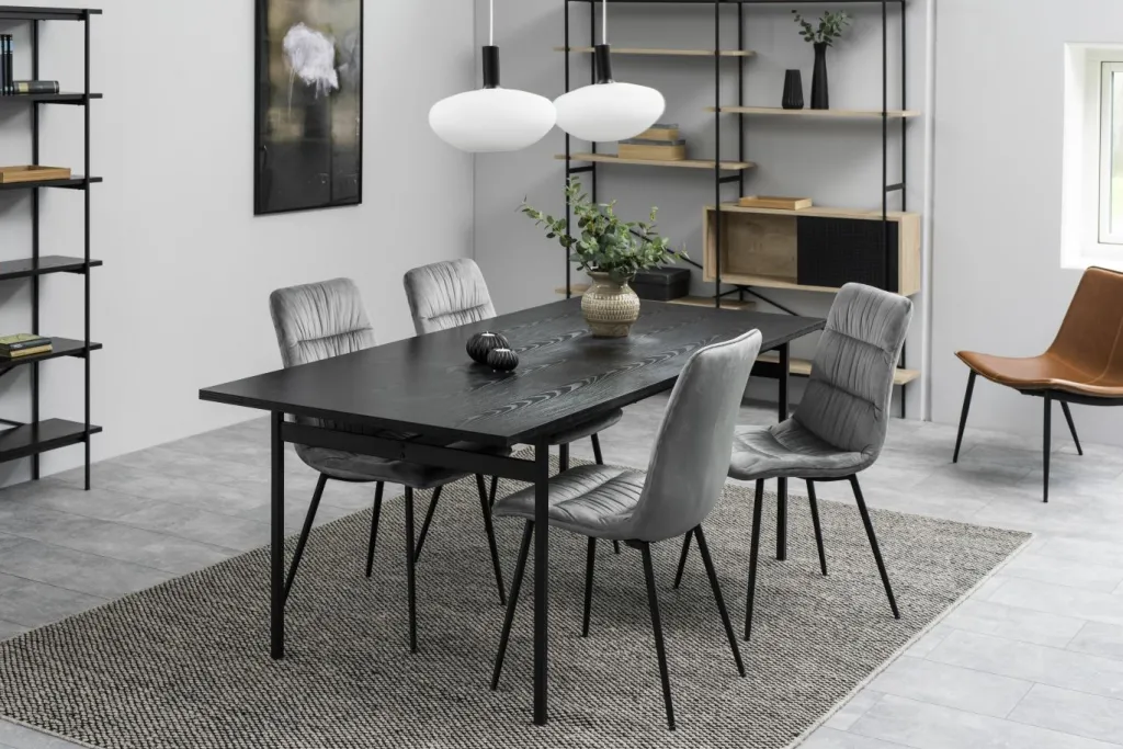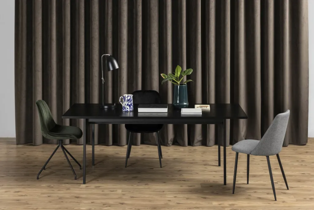 Piètement : métal finition époxy aspect rugueux ton noir mat