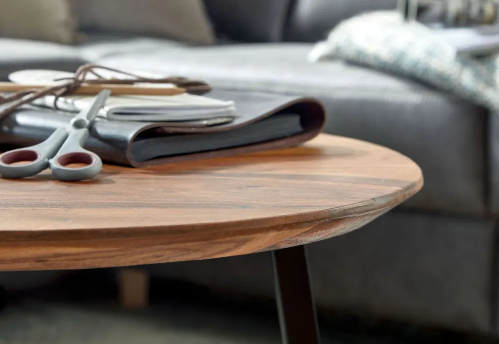 Plateau de table : bois de sheesham massif (Inde) avec couche de vernis transparent