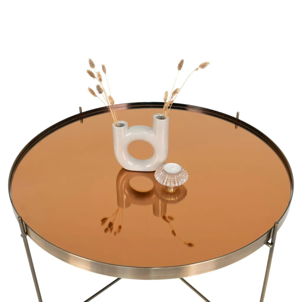 métal ton laiton avec plateau en verre