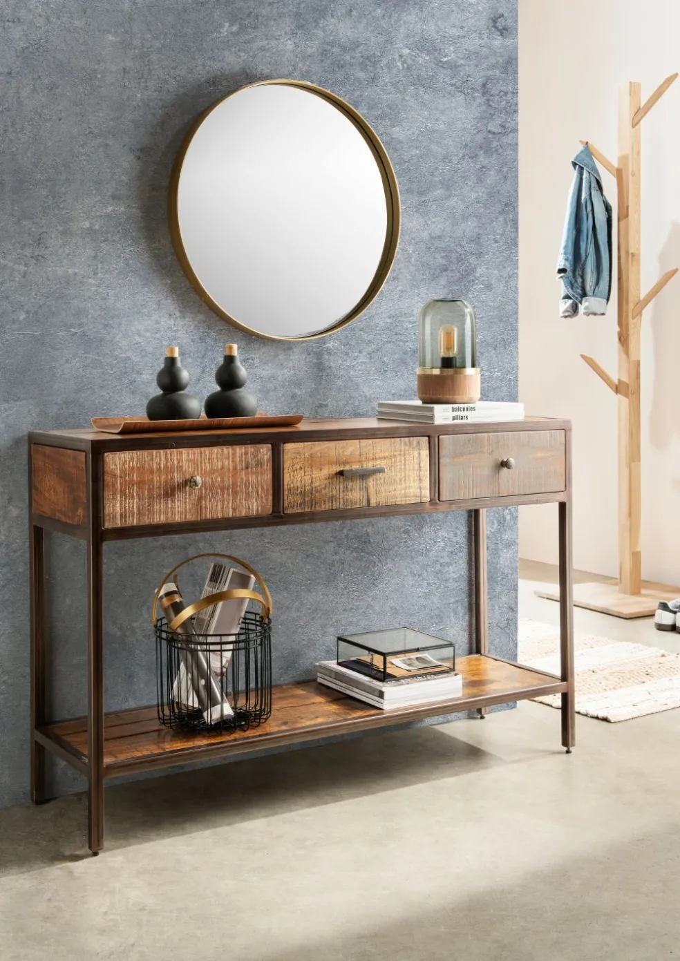 Vieux bois massif recyclé (Inde) avec cadre en métal (finition vintage)