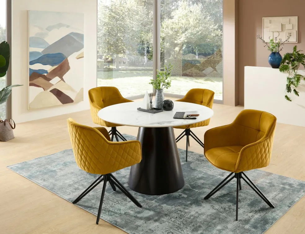 Piètement : métal finition époxy ton noir, en forme de colonne conique