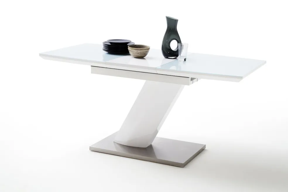 Colonne et allonge rabattable : MDF laqué ton blanc ultra brillant