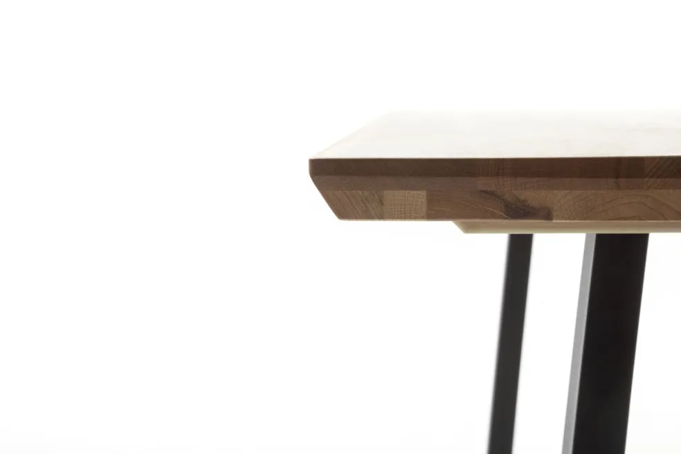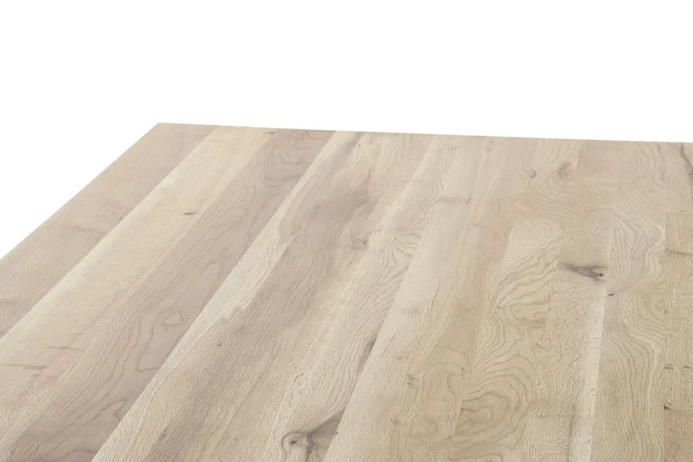 Plateau de table : chêne lombard massif (Roumanie) huilé, avec lamelles de part en part, doublé