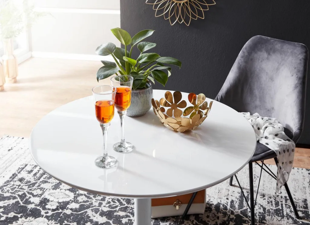 Plateau de table : MDF (panneau de fibres de bois de densité moyenne) laqué ton blanc ultra brillant