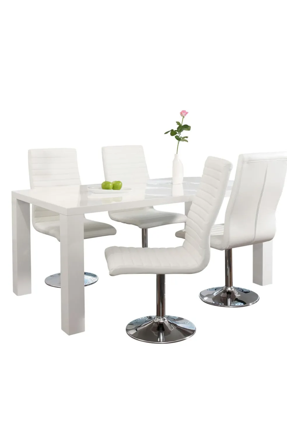 Plateau de table et piètement : MDF (panneau de fibres de bois de densité moyenne) laqué ton blanc ultra brillant