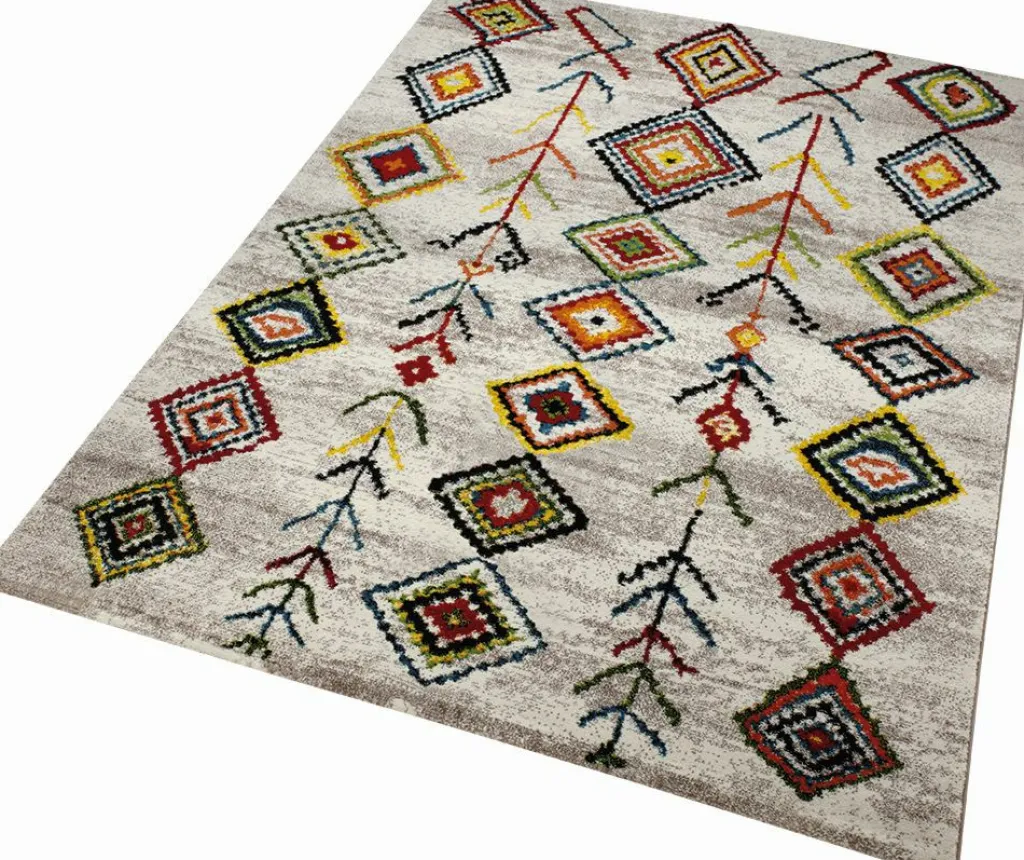 WECONhome Teppich COLORFUL MARRAKESH : tradition et innovation.La rencontre entre Orient et Occident.Les motifs abstraits colorés de ces superbes tapis tissés rappellent l’artisanat d’art traditionnel des berbères. Mais en jetant un œil sur les matériaux et la finition, on s’aperçoit que ces « tapis d’Orient » sont des accessoires ultra modernes et résistants en fibres synthétiques.