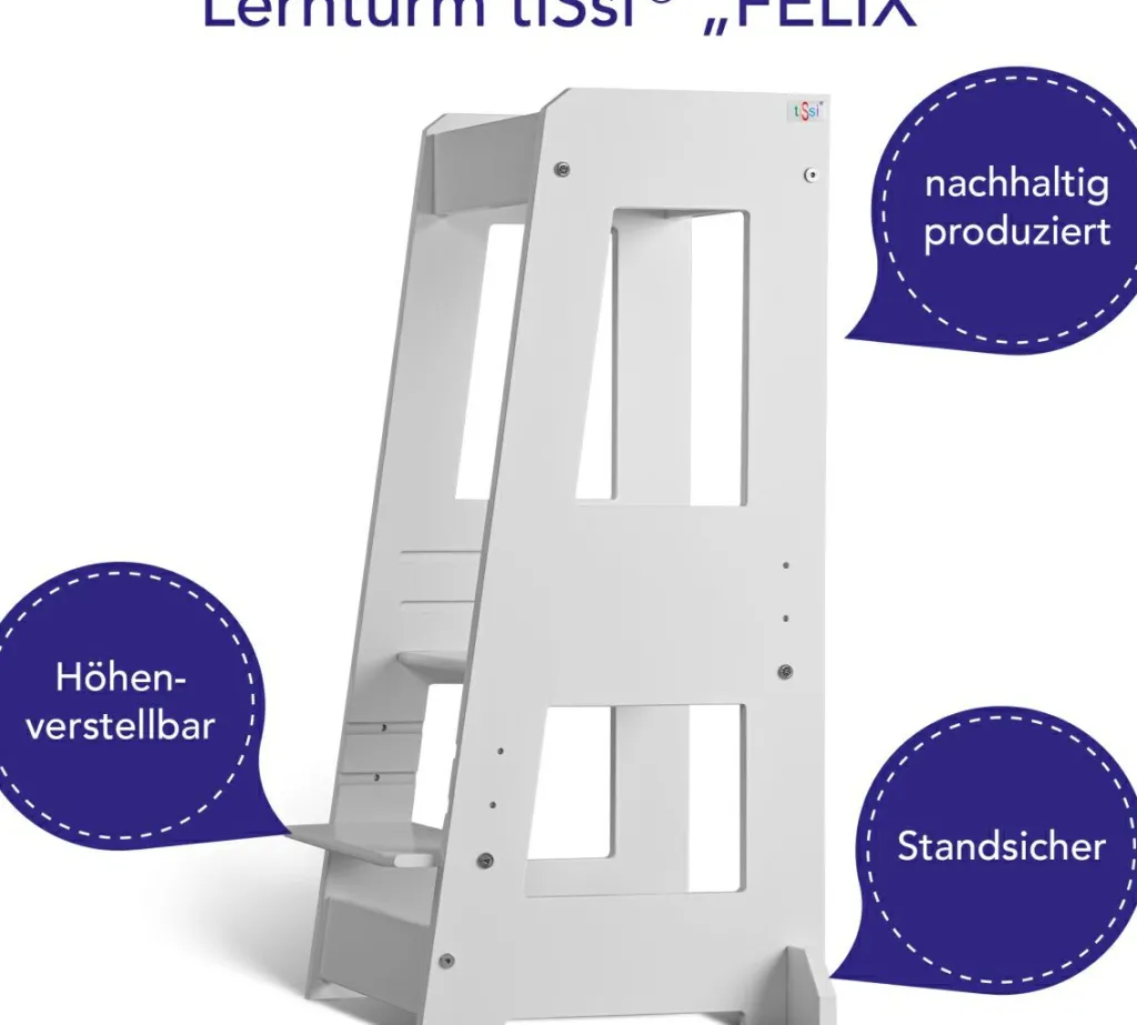 Cette tour d’observation peut s’adapter en un tour de main à la taille de votre enfant. La tour d’observation ultra stable est très pratique au quotidien pour les parents et offre aux enfants de 1 à 4 an(s) une liberté de mouvement adaptée