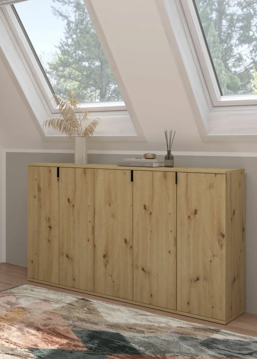 2 bahuts avec chacun 2 portes, 4 tablettes amovibles et 1 tablette fixe