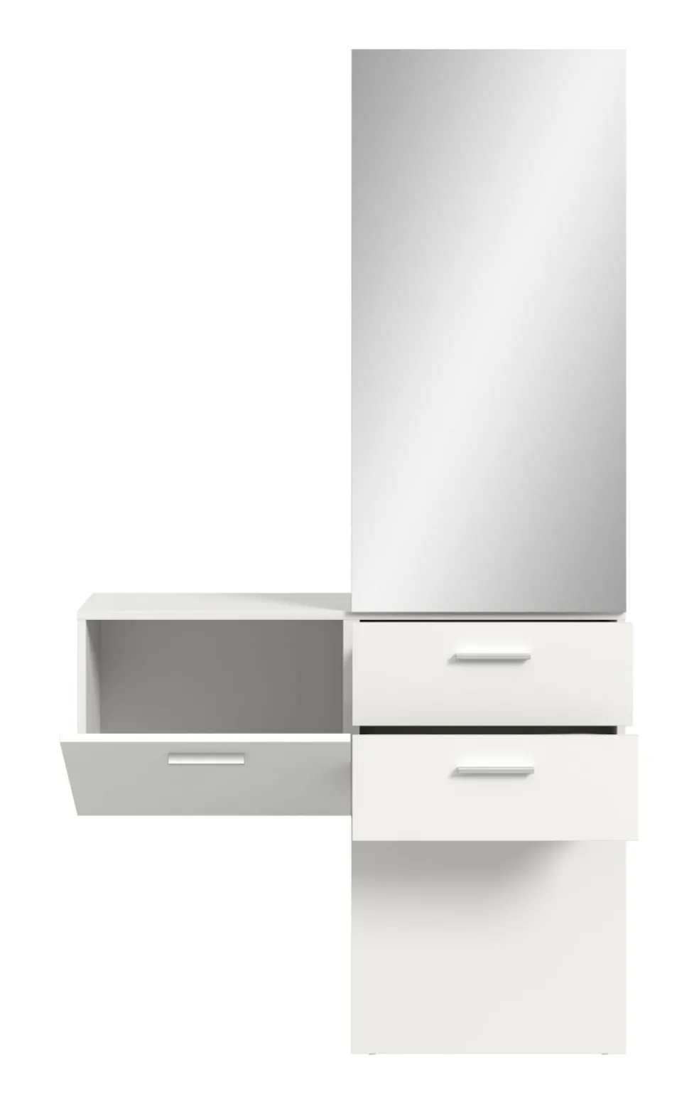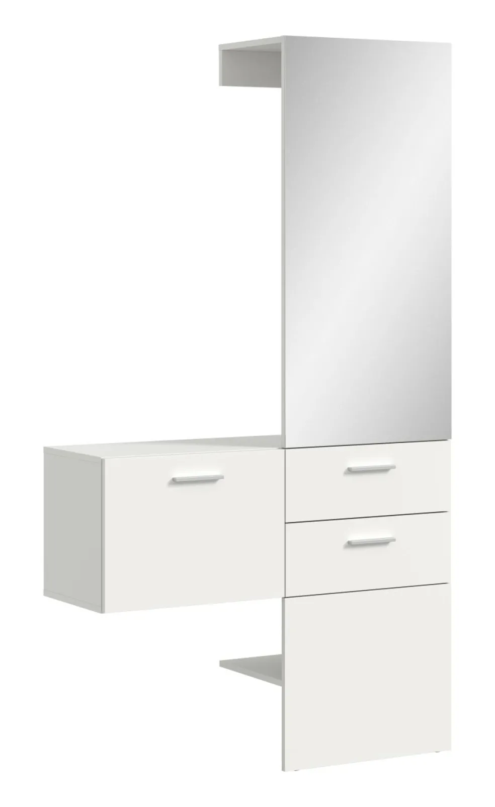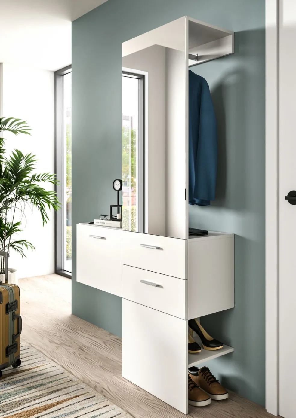 1 vestiaire compact avec 2 tiroirs, 1 miroir, 1 tablette et 1 barre de penderie
