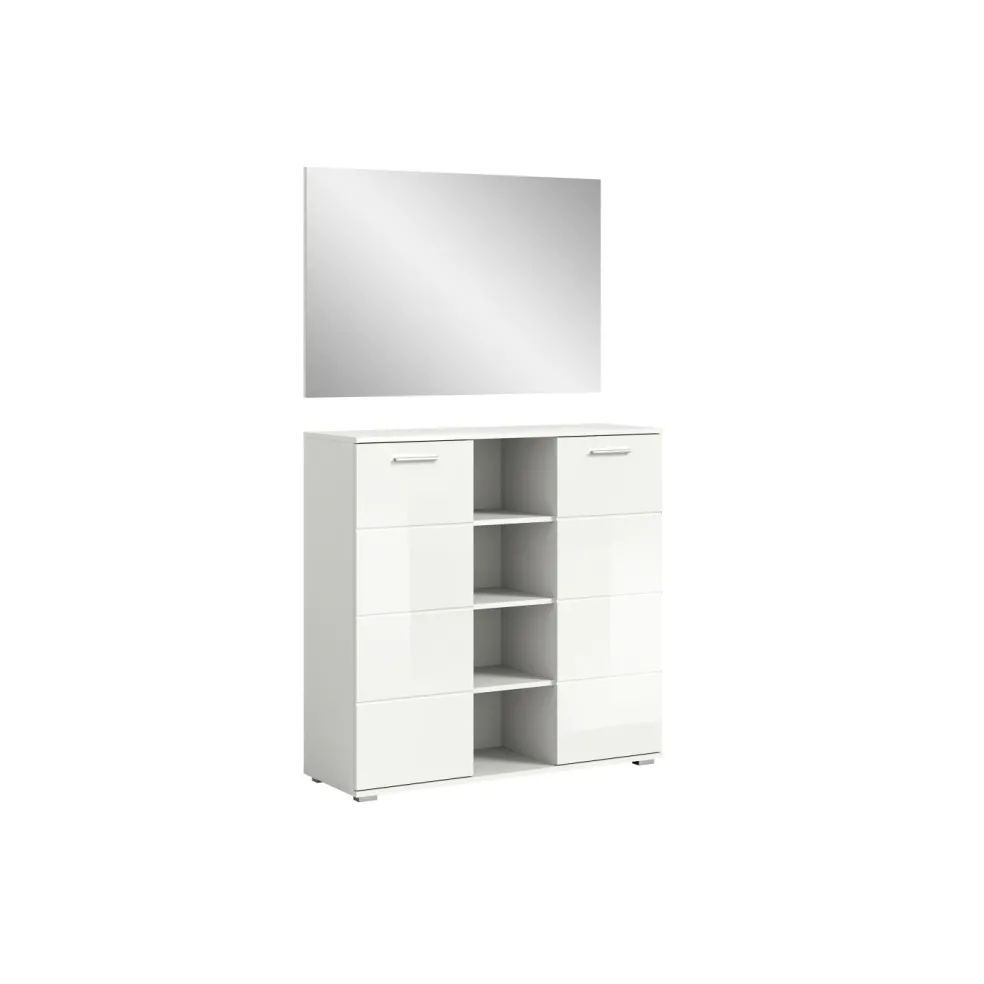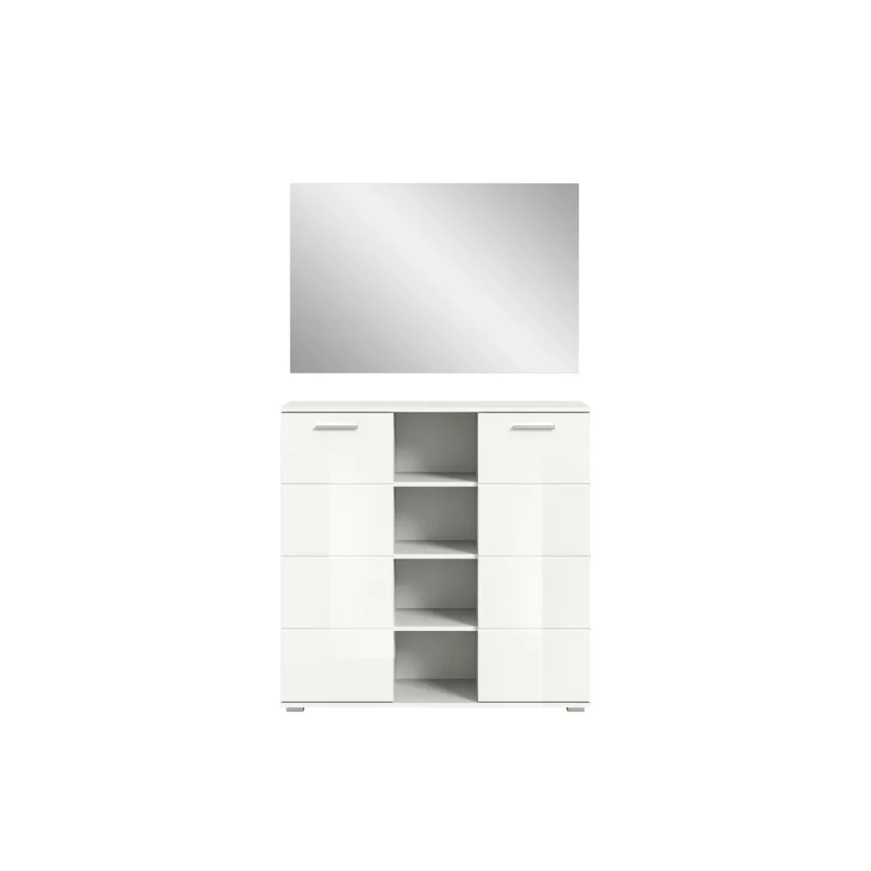 1 meuble à chaussures avec 4 casiers ouverts, 2 portes et 4 tablettes amovibles
