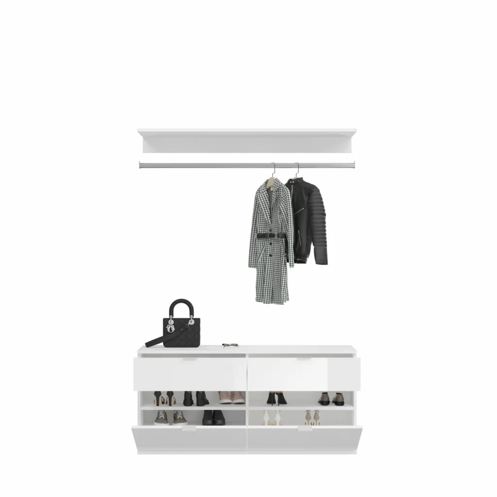 1 meuble à chaussures avec 2 tiroirs, 2 abattants et 2 tablettes amovibles