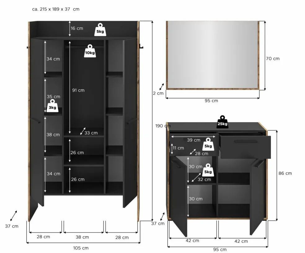 | Dimensions : | L/H/P env. 215/189/37 cm | ||