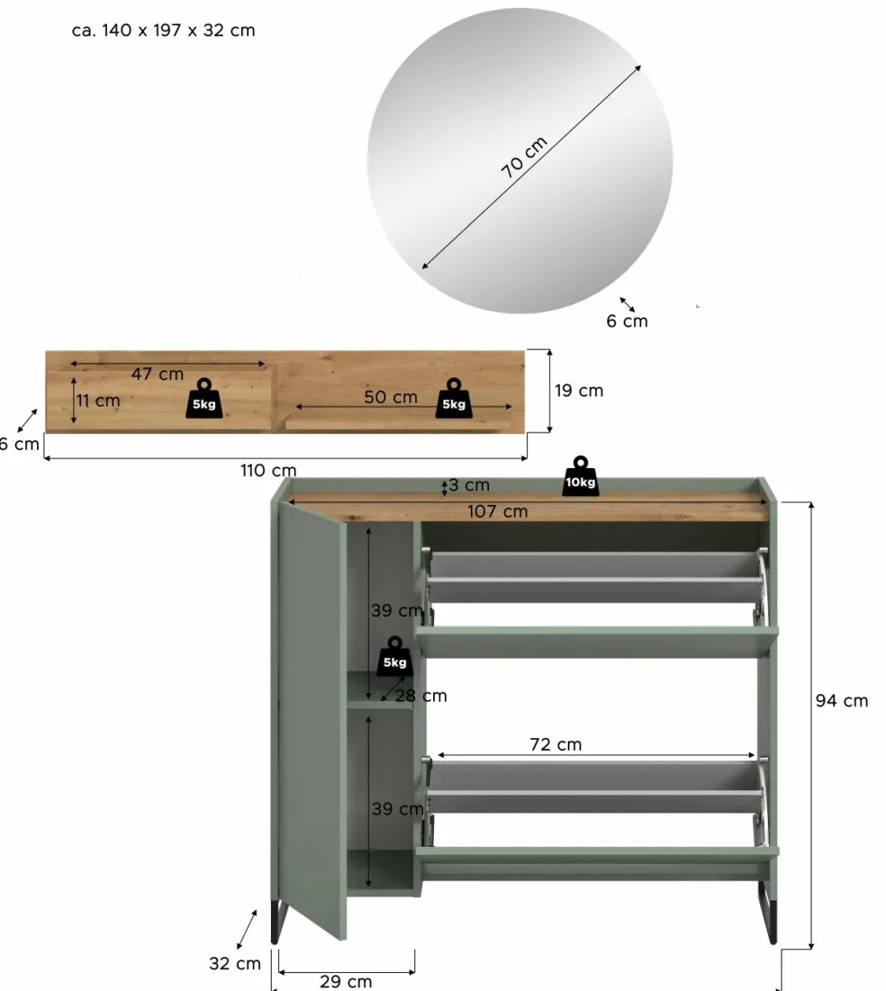 | Meuble à chaussures | 110 | 94 | 32 |