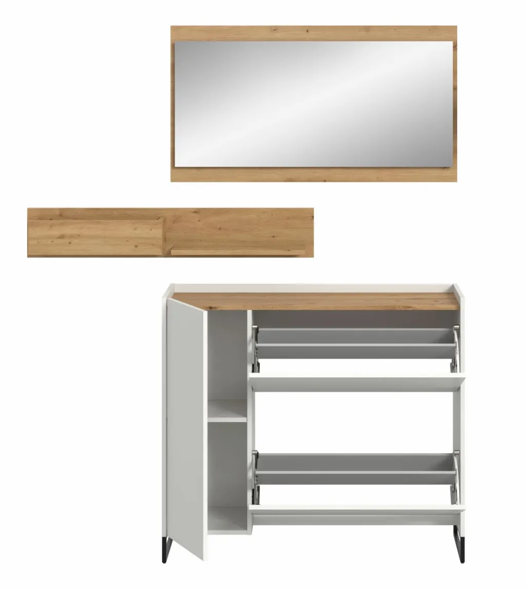 1 meuble à chaussures avec 1 porte, 1 tablette amovible, 2 abattants et 2 rangements pour chaussures
