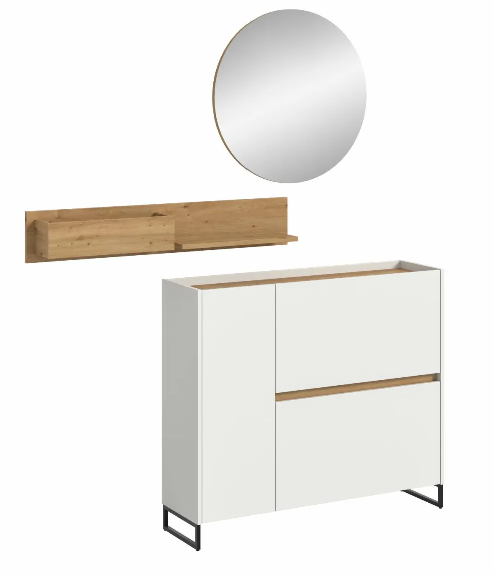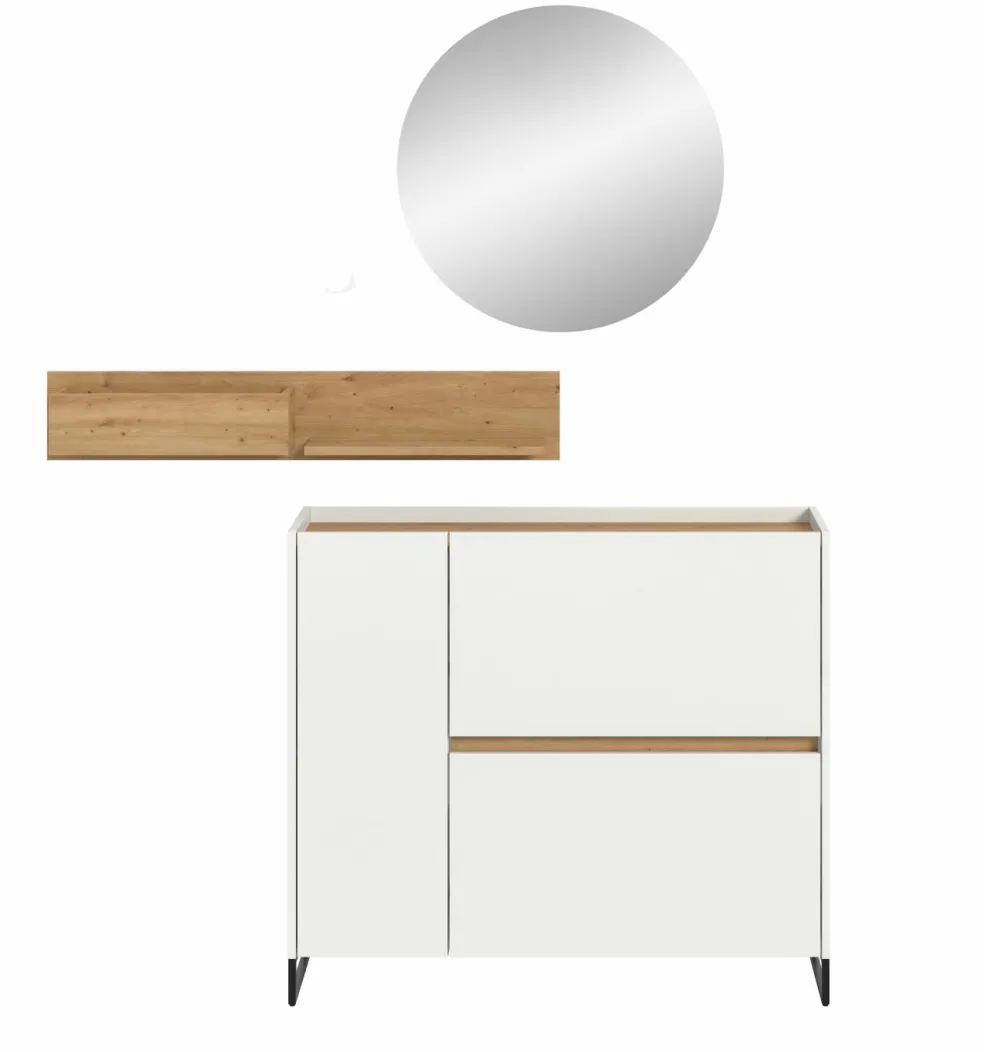 Façade : ton blanc et décor chêne Artisan / miroir