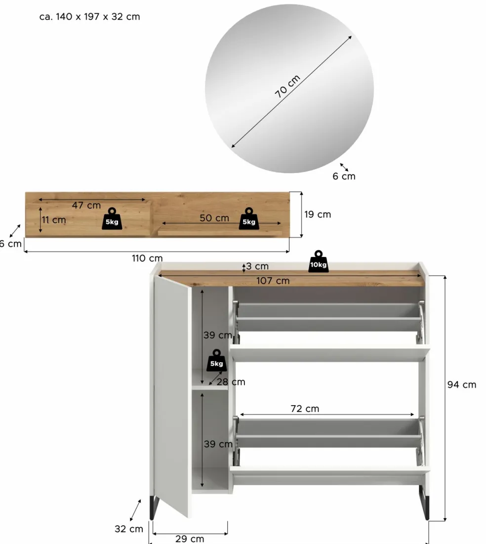 | Meuble à chaussures | 110 | 94 | 32 |