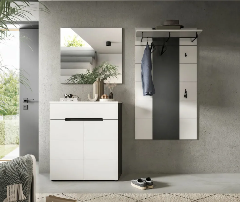 1 meuble à chaussures avec 2 portes, 1 tiroir et 3 tablettes amovibles