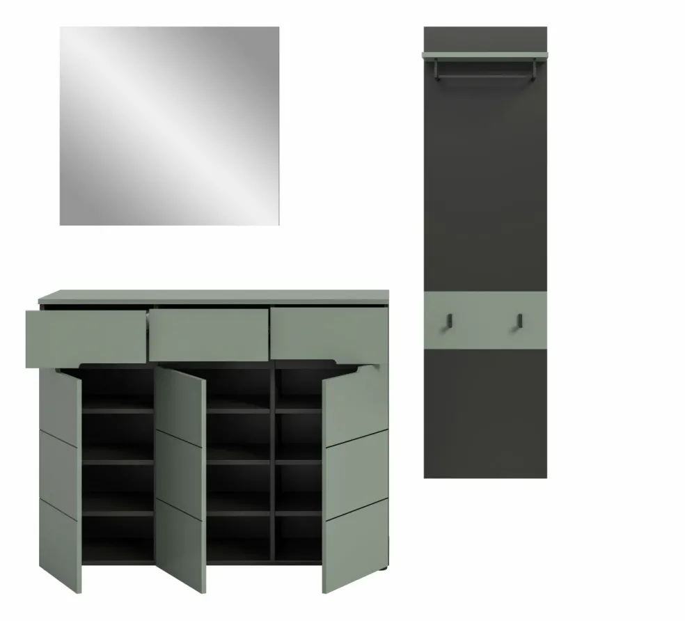 1 meuble à chaussures avec 3 portes, 3 tiroirs et 9 tablettes amovibles