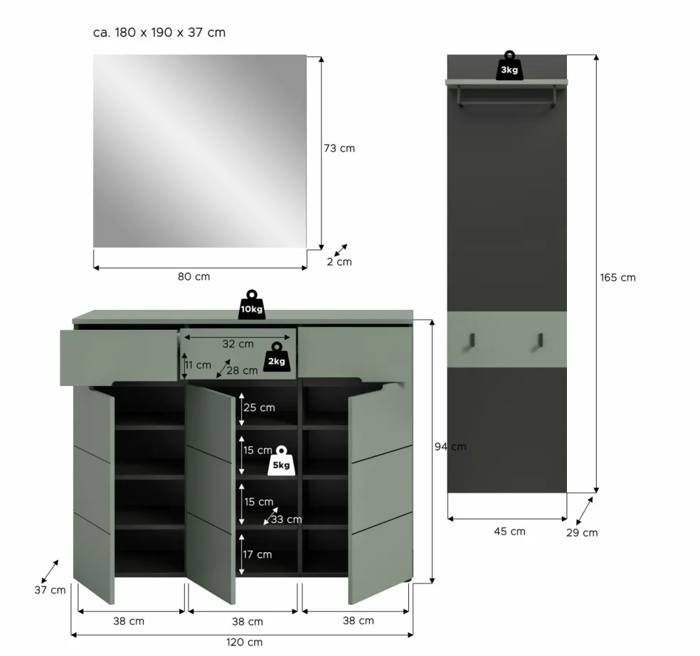 | Meuble à chaussures | 120 | 94 | 37 |
