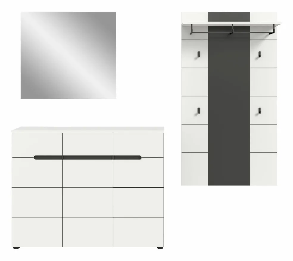 1 meuble à chaussures avec 3 portes, 3 tiroirs et 9 tablettes amovibles