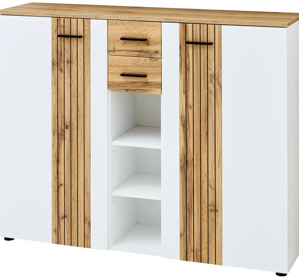 Caisson : ton blanc avec contrastes décor vieux chêne